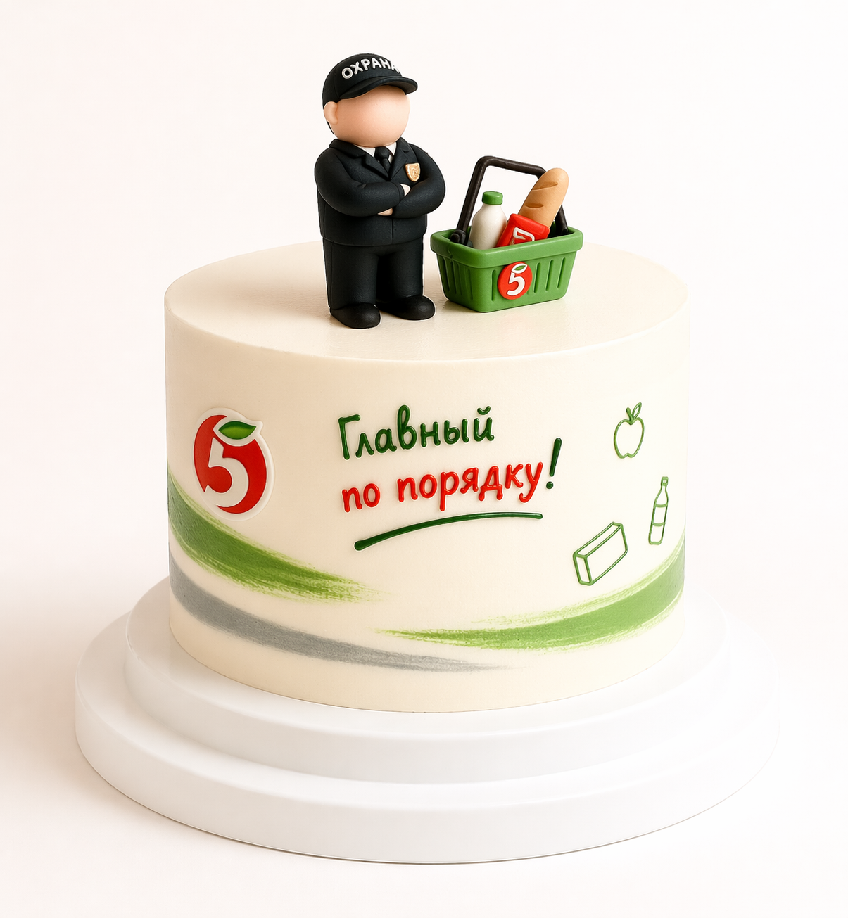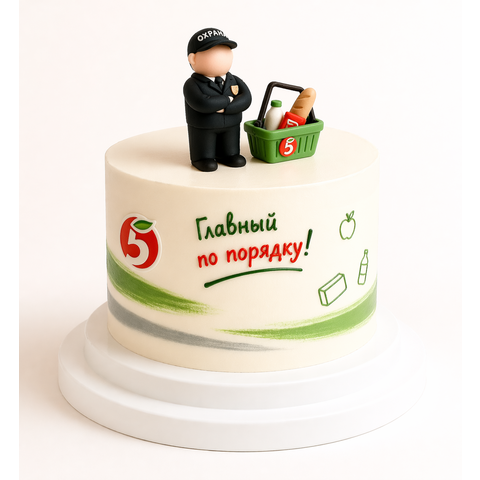 Торт сотруднику «Пятёрочки» с фигуркой и корзиной № 2127