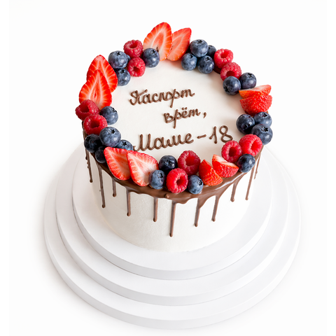 Торт с ягодным венком и шоколадным дрипом № 2139