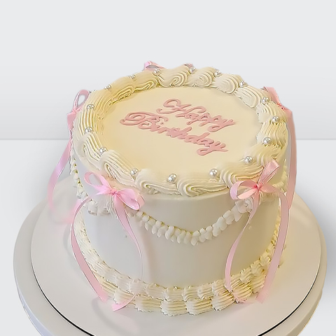 Торт ламбет белый с розовыми ленточками бусинами и надписью № 214