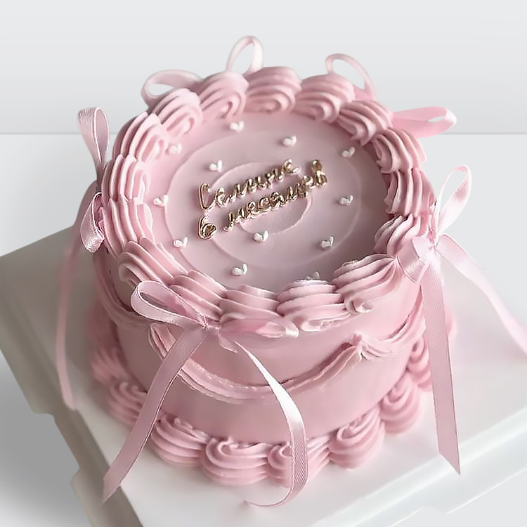 Торт ламбет розовый с розовыми ленточками сердечками и надписью № 215