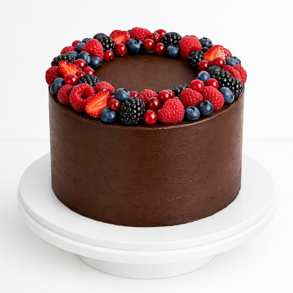 Торт шоколадный с ягодным венком № 2153