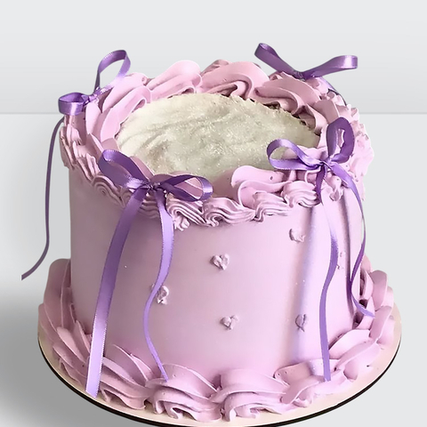 Торт ламбет розовый с розовыми ленточками сердечками и блестками № 216