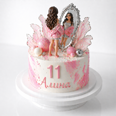 Торт с фигуркой девочки и зеркалом с цифрой 11 № 2179