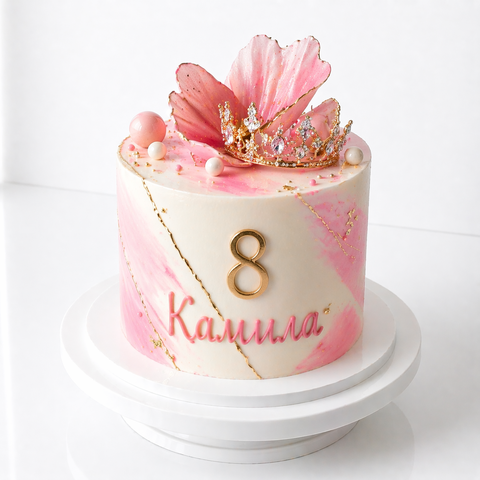 Торт с короной и цифрой 8 в розовом стиле № 2187