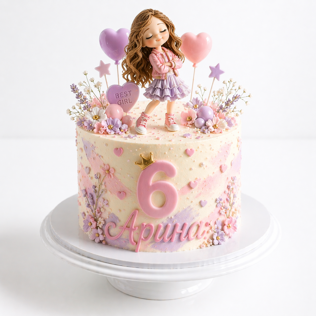 Торт на 6 лет с девочкой и шарами № 2192