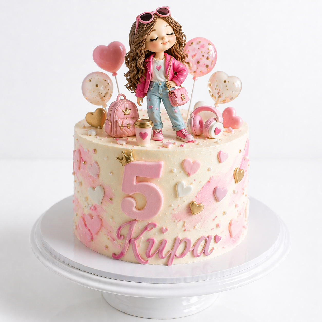 Торт на 5 лет с девочкой и шарами № 2197