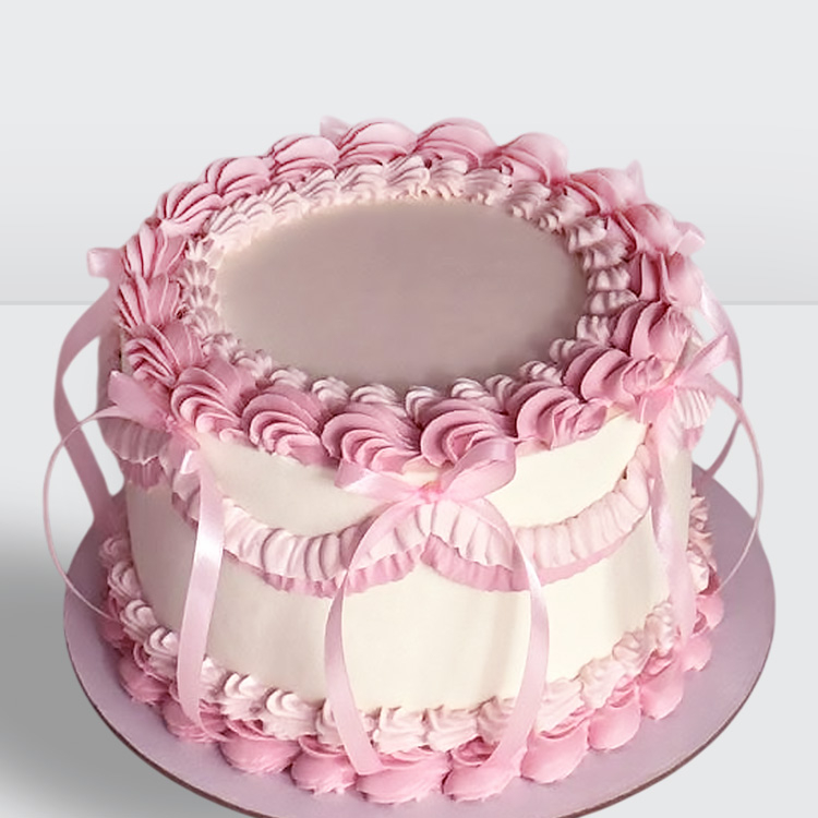 Торт ламбет розовый с розовыми ленточками с нежным декором и гармоничной композицией оформления № 220