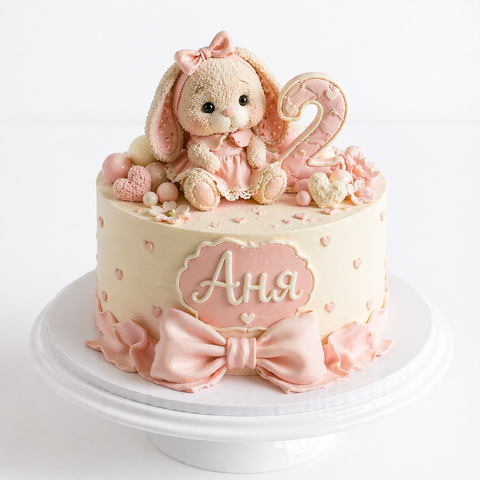 Торт на 2 года с зайчиком и бантом № 2201