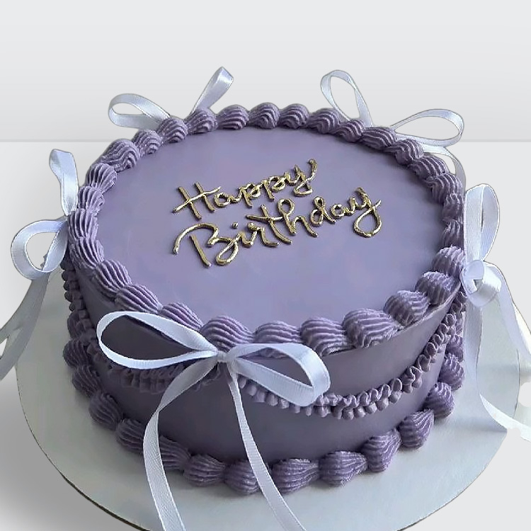 Торт ламбет сиреневый с ленточками и надписью с изящным декором и нежной композицией оформления № 226