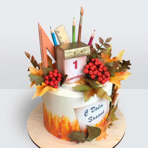 ? Торт на 1 сентября. Календарь и линейка. Рябина. Торт на день учителя № 228