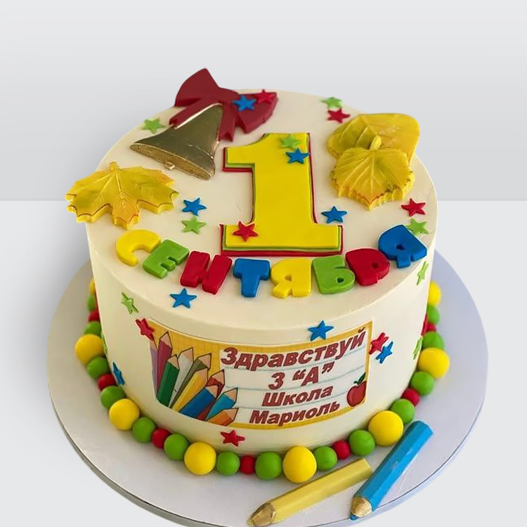 ? Торт на 1 сентября. Колокольчик и надписи. Торт на день учителя № 230