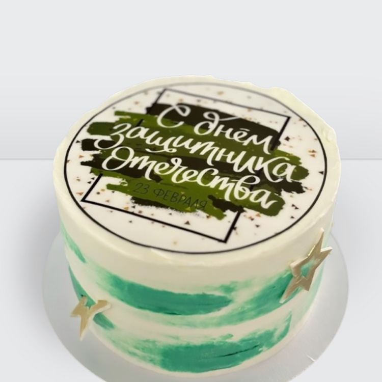 ? Торт милитари для мужчин на 23 февраля зеленый с надписью и звездами № 242