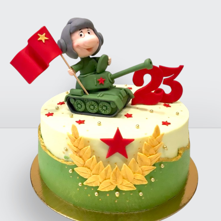 ? Торт милитари для мужчин на 23 февраля зеленый с танком, флагом и звездой № 246