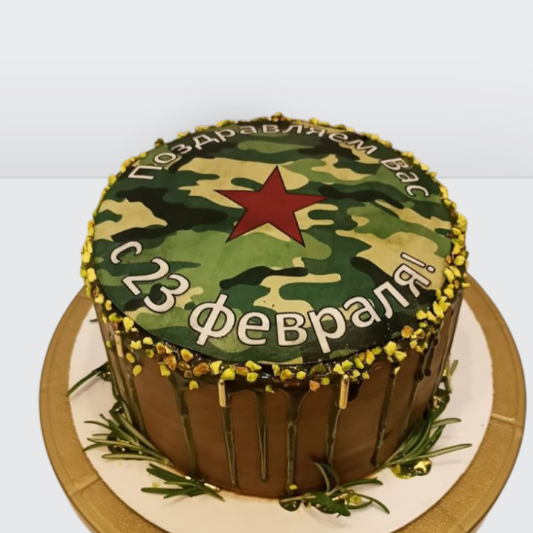 ? Торт милитари для мужчин на 23 февраля зеленый , облитый шоколадом с надписью № 248