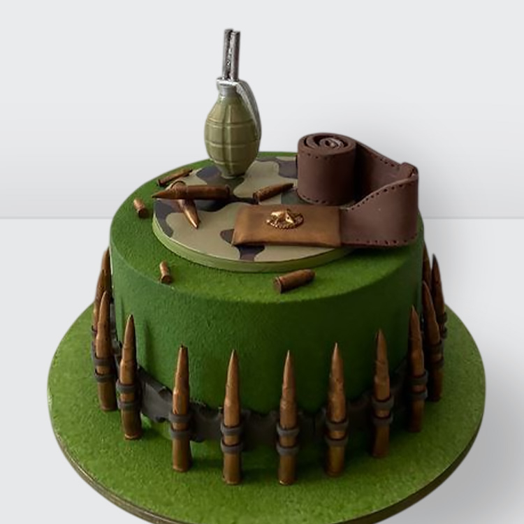 0 Торт милитари для мужчин велюровый зеленый с патронами гранатой и ремнем № 253