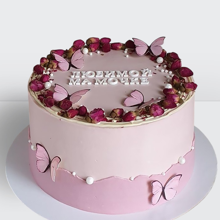 0 Торт розовый для мамы с розочками и бабочками № 267