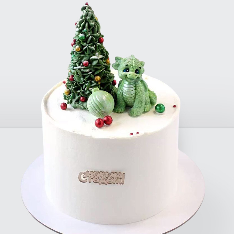 0 Торт на Новый год с фигуркой и елочкой новогодними украшениями № 272