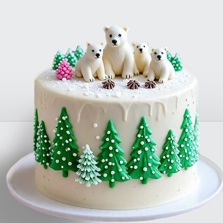 Торт на Новый год с фигуркой белые медведи и елочкой, новогодними украшениями № 277