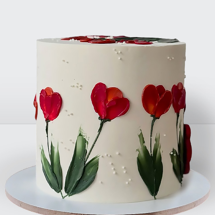 0 Торт с красными тюльпанами № 300