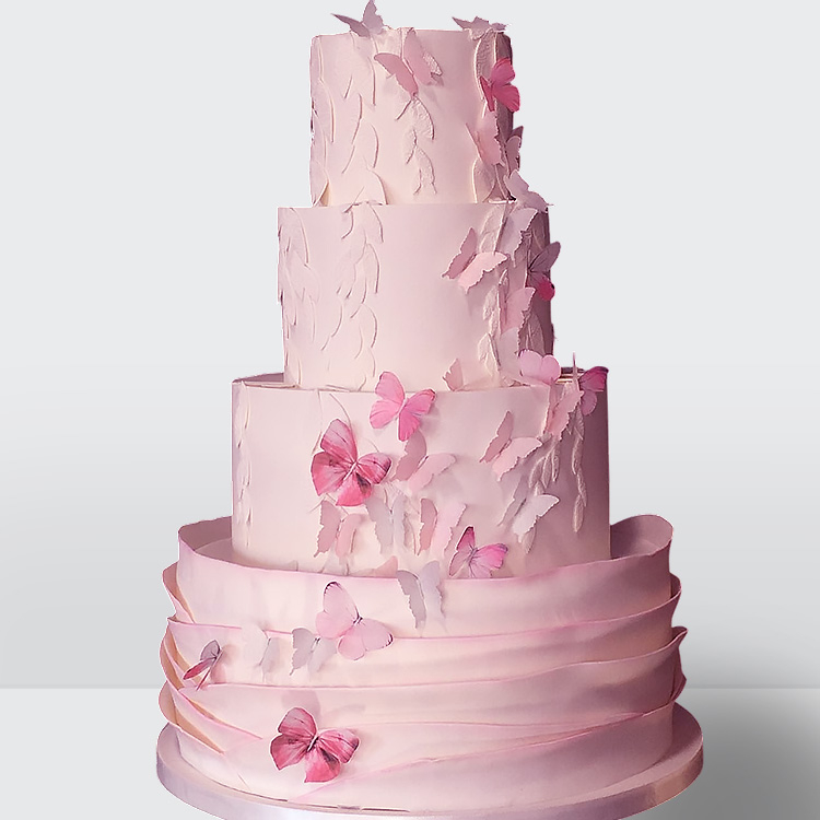? Свадебный торт с розовыми бабочками 4 яруса № 316