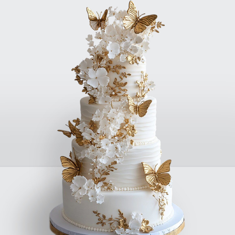 0 Свадебный торт с золотыми бабочками и цветами № 321