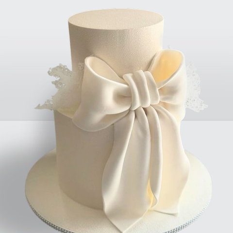 0 Свадебный торт с бантом из мастики 2 яруса № 325