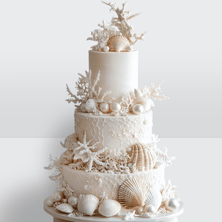 0 Свадебный торт на морскую тему с кораллами, ракушками и жемчугом № 335
