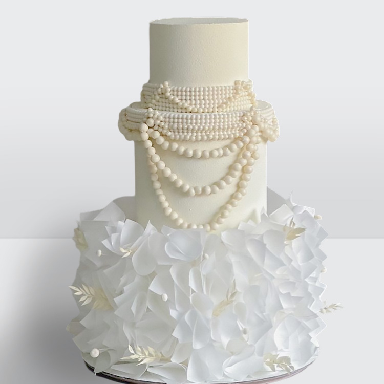 0 Свадебный торт с жемчугом и драпировкой из рисовой бумаги № 336