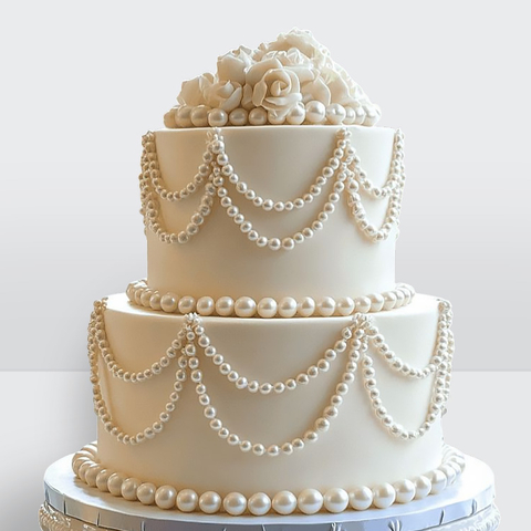 0 Свадебный торт с жемчужными нитями и розами 2 яруса № 339