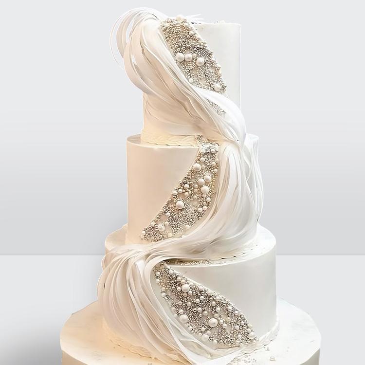0 Свадебный торт с жемчугом и драпировкой № 344