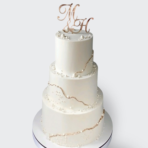 0 Свадебный торт с инициалами и жемчужинами № 346