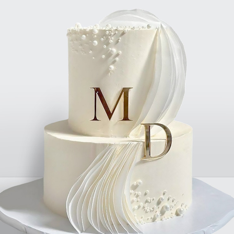 0 Свадебный торт с инициалами и жемчужинами, и драпировкой № 350