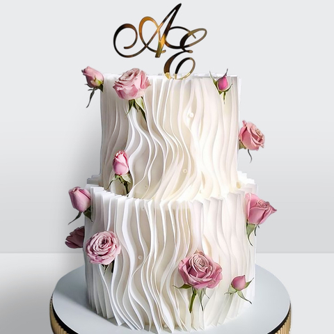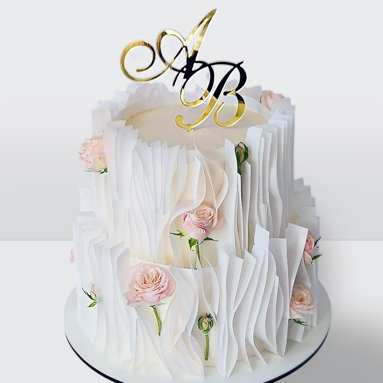 0 Свадебный торт с инициалами и розами, драпировкой из рисовой бумаги Длина: 73 № 351