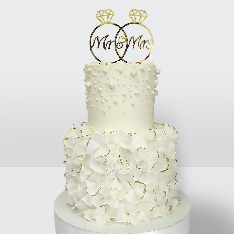 0 Свадебный торт с обручальными кольцами, жемчужинами и драпировкой № 362
