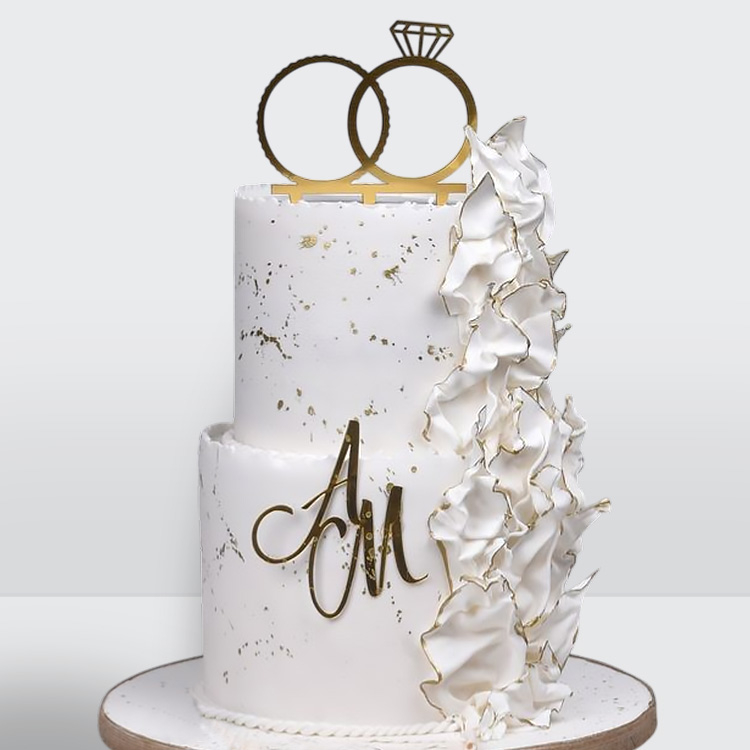 0 Свадебный торт с обручальными кольцами и драпировкой № 365