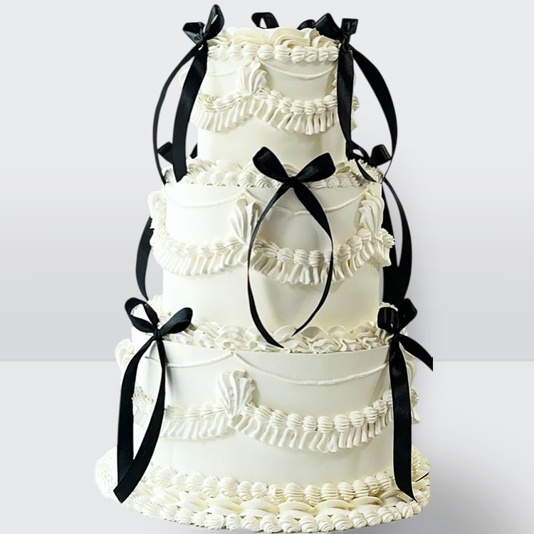0 Свадебный торт ламбет 2 яруса с черными лентами с изящным декором и контрастной композицией оформления № 394