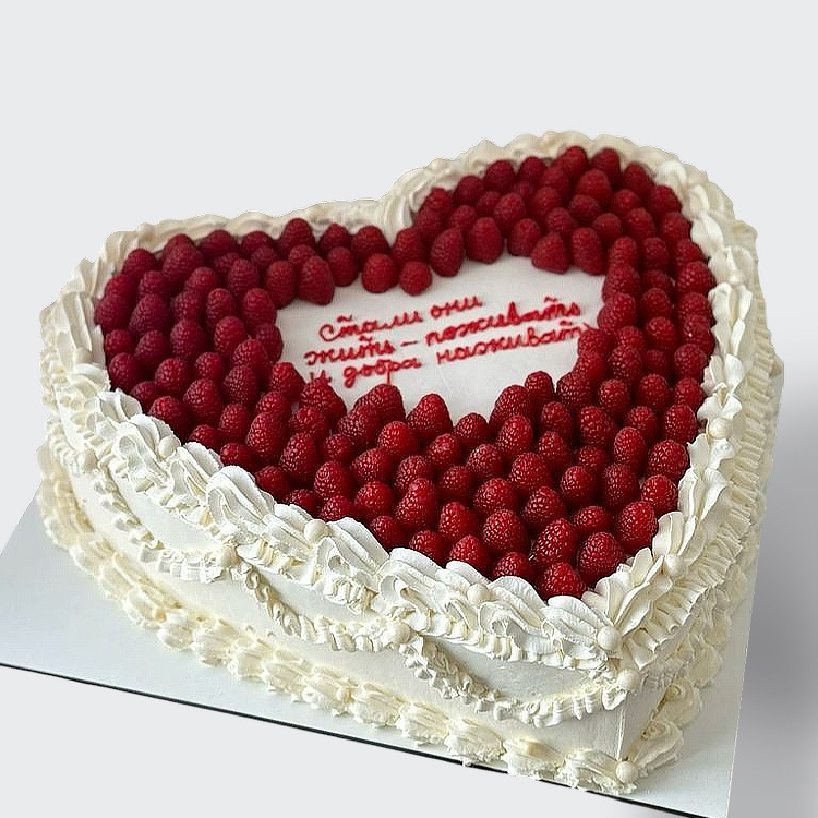 0 Свадебный торт ламбет в форме сердца с малиной и надписью с изящным декором и романтичной композицией № 404