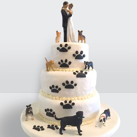 Свадебный торт с фигурками жениха и невесты 3 яруса с собаками с оригинальным декором и трогательной композицией № 415