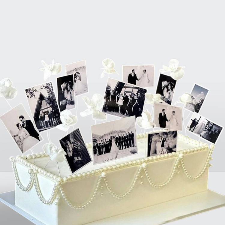 0 Свадебный торт с фотографиями прямоугольный с персонализированным декором и аккуратной геометрией формы № 420