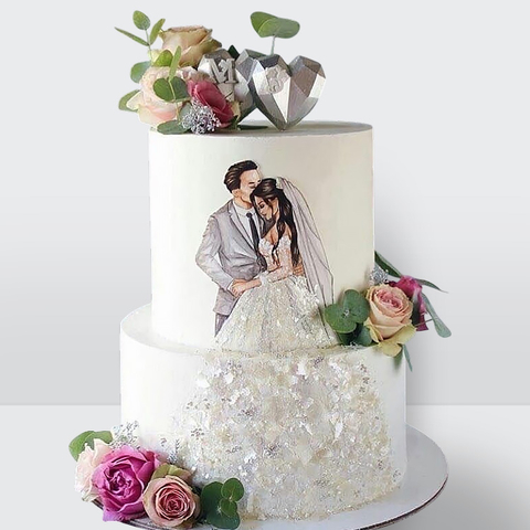 0 Свадебный торт с фотопечатью и розами с изящным декором и персонализированной композицией № 421
