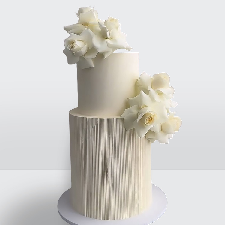 Торт с розами 2 яруса с нежным декором и гармоничной цветочной композицией № 442