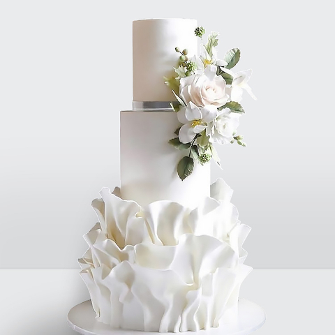 Торт с розами и драпировкой 3 яруса с изящным декором и плавными линиями оформления № 455