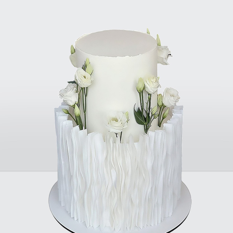 Торт с розами и драпировкой 2 яруса с изящным декором и плавными линиями оформления № 468