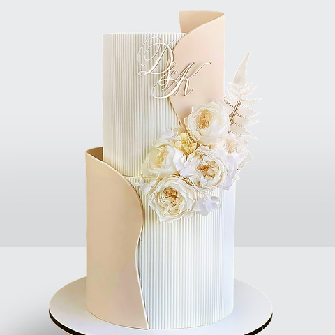 Торт с розами и драпировкой из мастики с изящным декором и плавными линиями оформления № 471