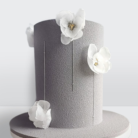 0 Свадебный торт велюровый серый с цветами с лаконичным декором и бархатной текстурой покрытия № 490