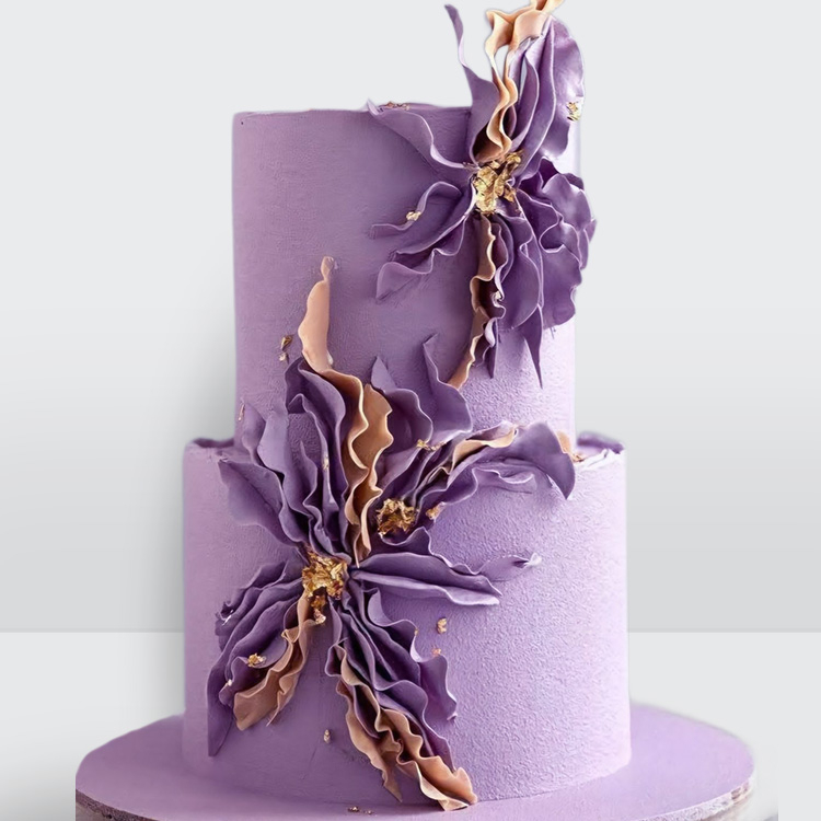 0 Свадебный торт велюровый сиреневый с цветами 2 яруса с нежным декором и бархатной текстурой покрытия № 491