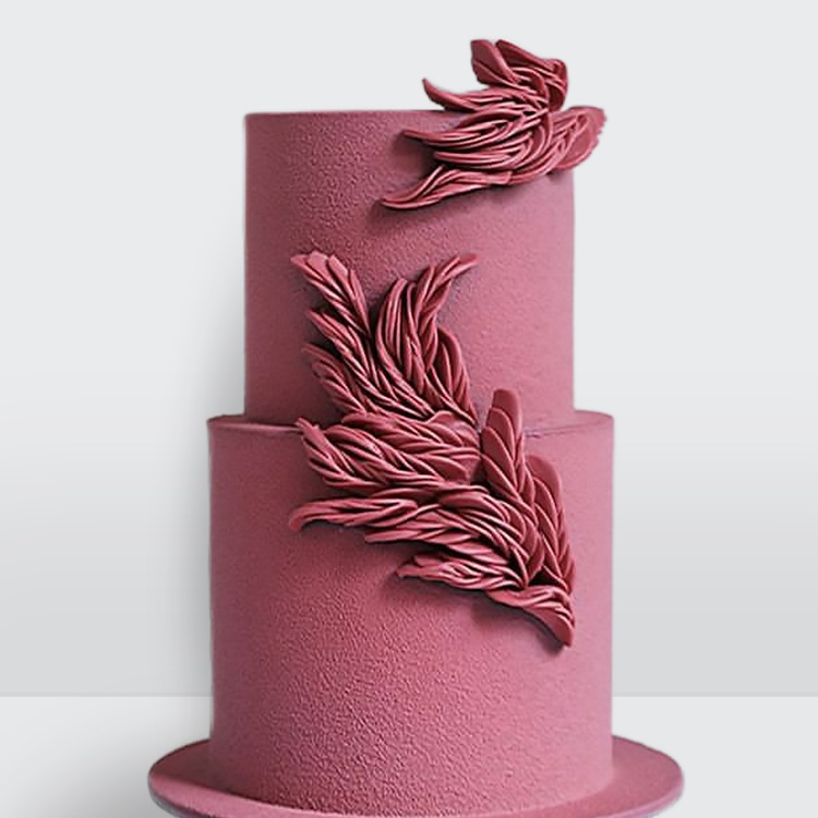 0 Свадебный торт велюровый красный с цветами 2 яруса с ярким декором и бархатной текстурой покрытия № 495