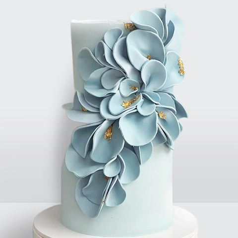 0 Свадебный торт велюровый голубой с цветами 2 ярусами с нежным декором и воздушной текстурой покрытия № 496