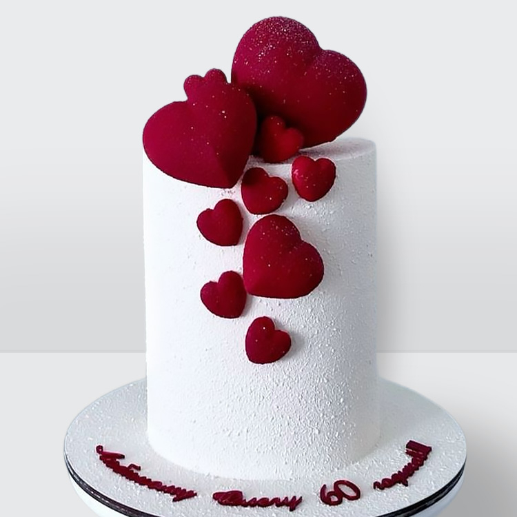 0 Свадебный торт с красными сердечками с ярким декором и романтичной композицией № 497