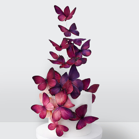 0 Свадебный торт с красными бабочками с эффектным декором и выразительными акцентами оформления № 500